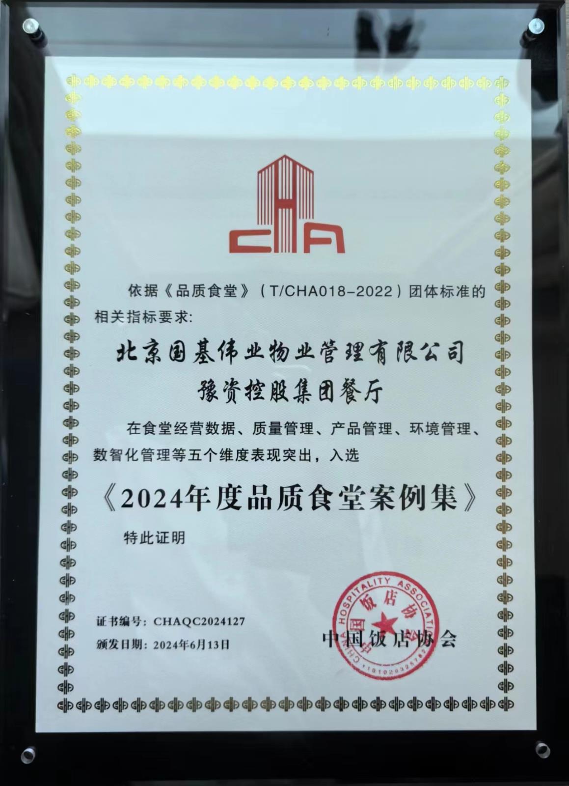热烈祝贺豫资控股餐厅成功入选中国饭店协会《2024年度品质食堂案例集》!为全面贯彻落实全国两会精神,完整、准确、全面贯彻新发展理念,加快构建新发展格局,豫资控股集团餐厅全力打造品质化、智慧化、绿色化、节约化的高质量食堂。2024年6月12-14日,中国饭店协会在山东…...