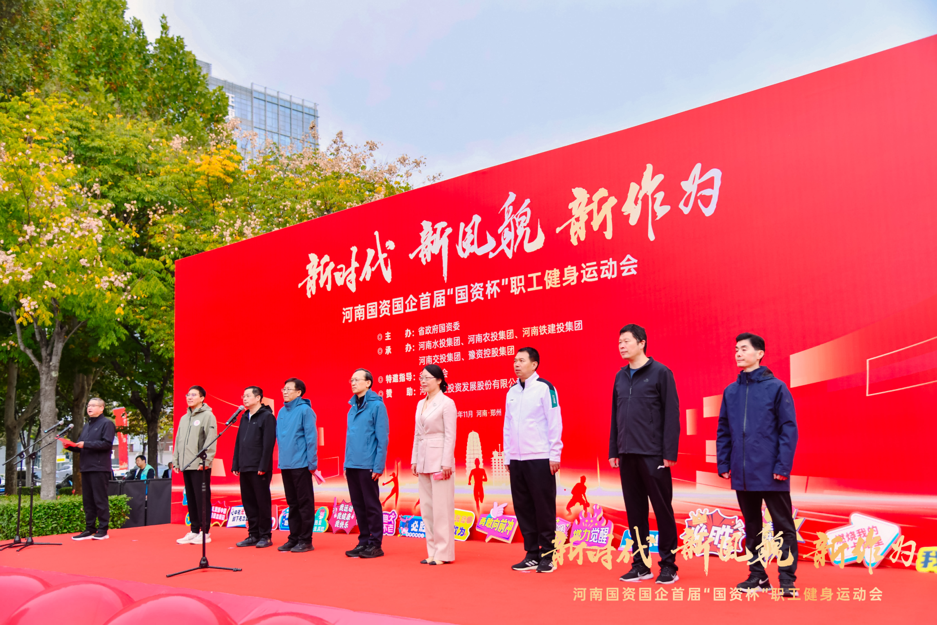 11月9日上午,河南国资国企首届“国资杯”职工健身运动会,在郑东新区龙子湖畔盛大开幕。省政府国资委和相关省属国有企业25支代表队齐聚一堂,共同参与这一体育盛事。豫资控股集团党委副书记、董事吴国学带领集团30余名队员代表参加开幕式。